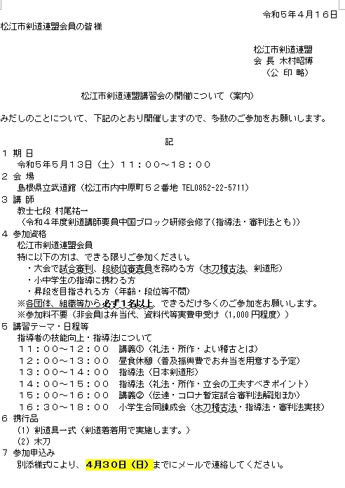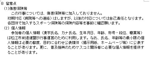 段位、職業等)は松江市剣道連盟が行事運営のために利用します。