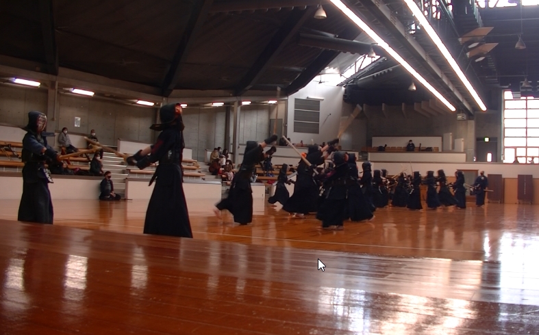 一息(息継ぎをしないで)の面の打ち込み、9本までできた小学生もいました。