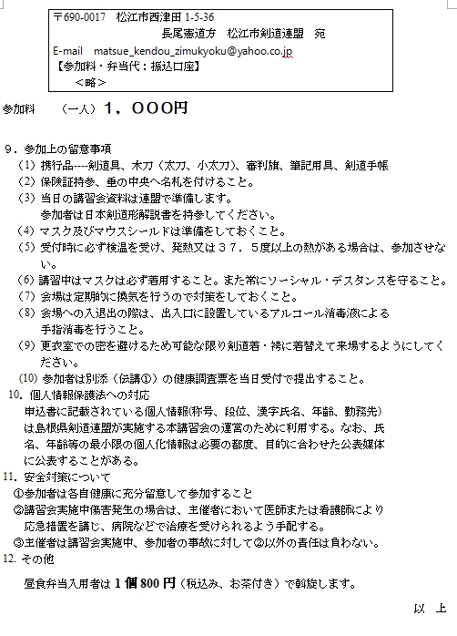 令和5年度剣道中央講習会・伝達講習会について(案内)~松江市剣連から